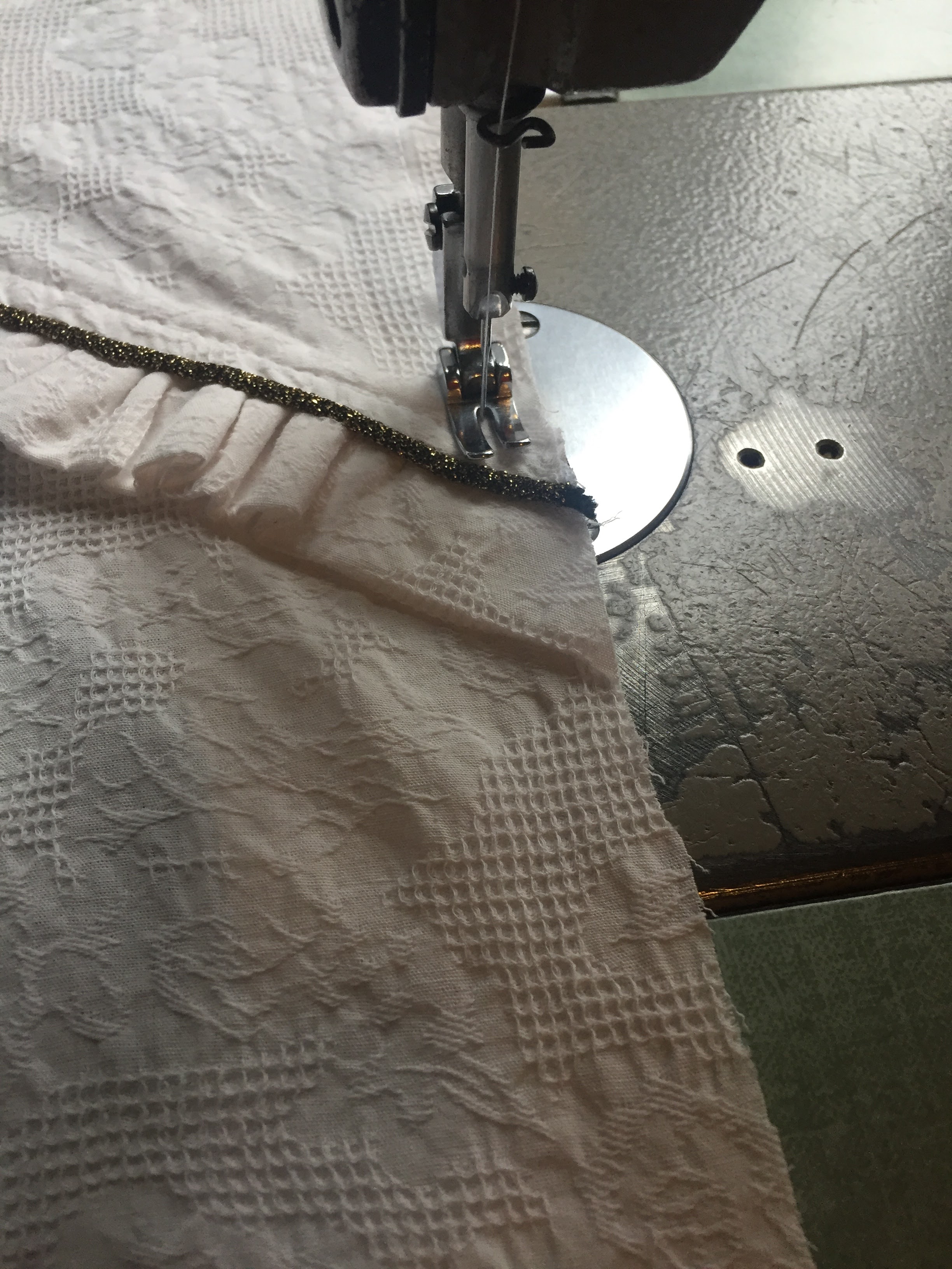Froncez ensuite entre les repères et répartissez les fronces.